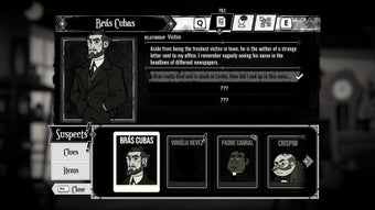 Механика "Доска мышления" выделяется, позволяя игрокам связывать улики и восстанавливать события с удовлетворительной глубиной. Ее литературное вдохновение, черпаемое из Мачадо де Ассиса, добавляет остроумия и сатиры к темной сюжетной линии. В сочетании с нарисованной от руки графикой и живым составом персонажей, мир и игровой опыт кажутся интеллектуально увлекательными и насыщенно атмосферными.